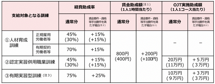 人材開発支援助成金やキャリアアップ助成金等の各種助成金は、原則毎年4月に制度の改正があり、支給要件や加算対象などの変更がある場合がございます。